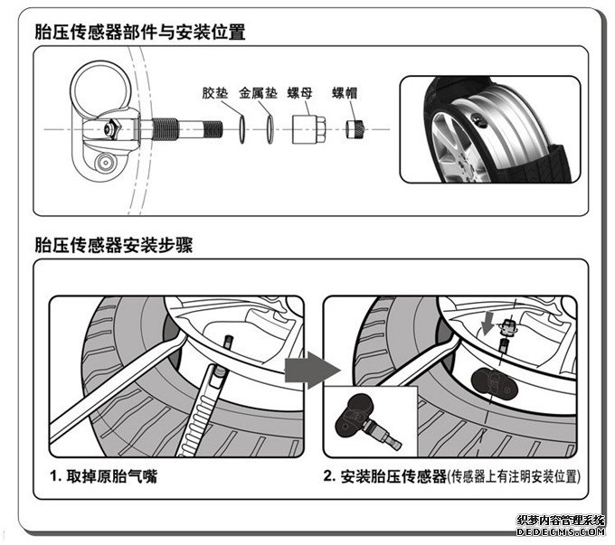 建議在正規的輪胎店或者4S店進行安裝,具體安裝方法可以參照圖示或致電400服務熱線進行指導。安裝時請將顯示器打開,以便在安裝的過程中顯示器及時對碼顯示。傳感器安裝完畢需給輪胎做動平衡;